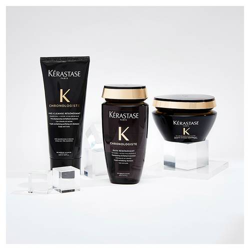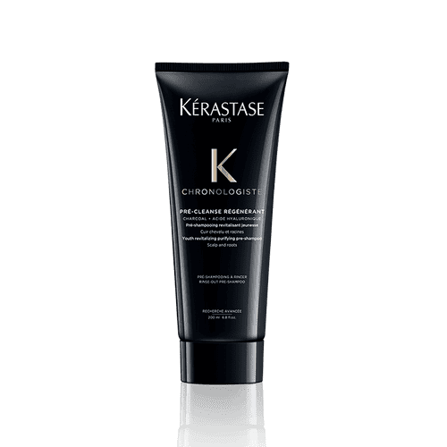 Chronologiste Pré-Cleanse Régénérant deeply cleanses the scalp and roots for a healthy scalp. Featuring Abyssine, Hyaluronic Acid, Vitamin E and Charcoal, this is a purifying and detoxifying pre-wash to remove dead skin cells and pollution.